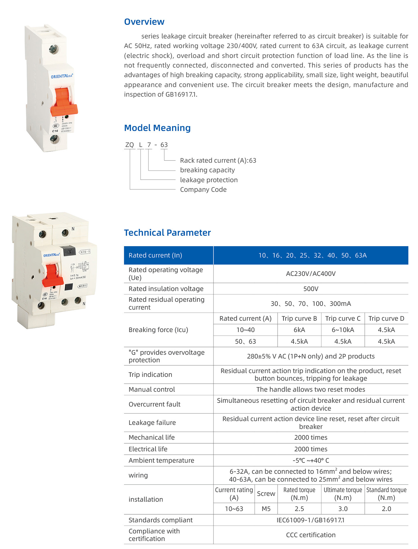 ZQL7-63 SMALL LEAKAGE CIRCUIT BREAKER